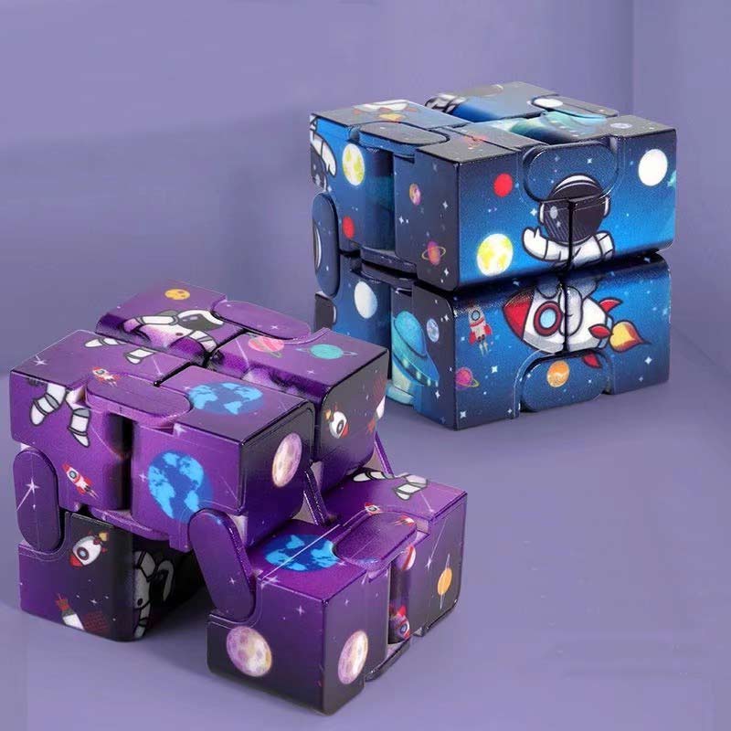 Genießen Sie das angenehme haptische Erlebnis, das dieser 3D Infinity Cube bietet. Abgesehen von seiner wandelbaren Struktur können Sie ihn auch als stilvolles Deko-Element einsetzen. Platzieren Sie ihn im Kinderzimmer, wo er perfekt zu Illustrationen von Astronauten, Planeten und Raketen passt. Der 3D Infinity Cube ist in den Farben Blau und Lila erhältlich und sorgt für ein spielerisches wie dekoratives Highlight.