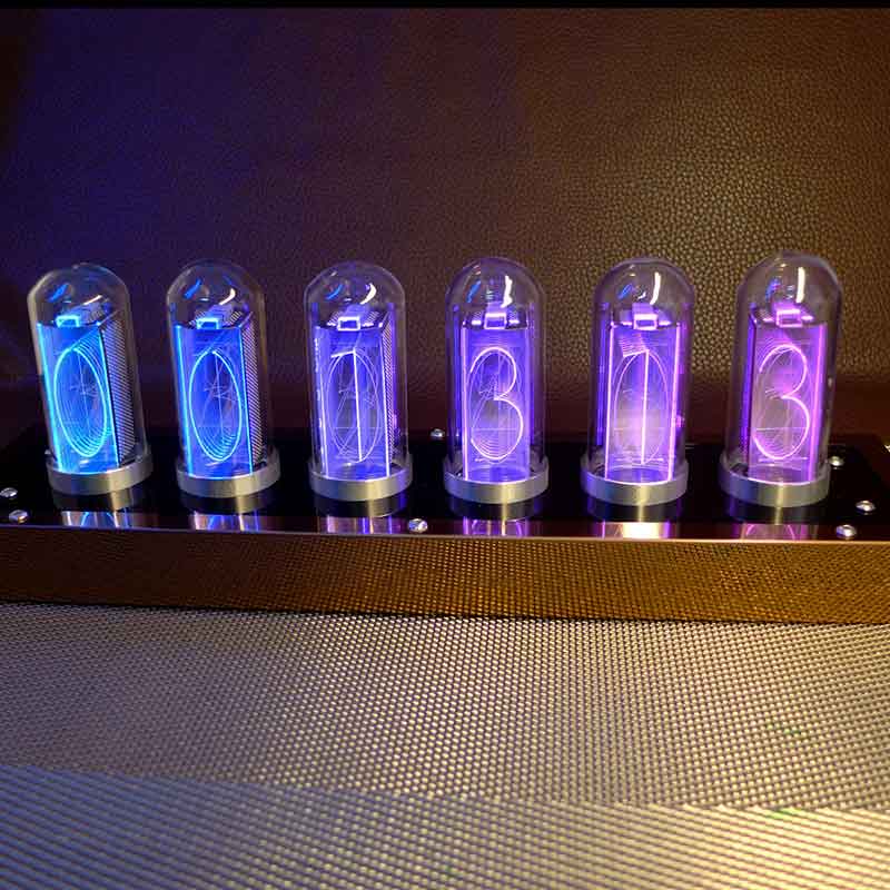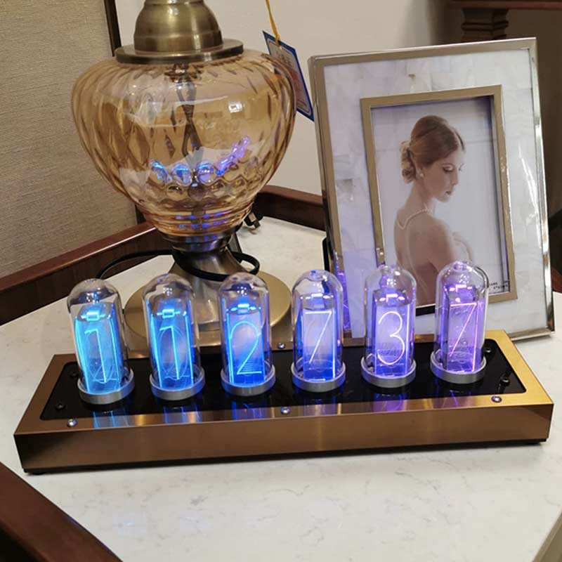 Mit Farbverläufen oder schlichten, einfarbigen Leuchtvarianten können Sie die Uhr nach Belieben gestalten. So wird die Nixie-Uhr aus Metall nicht nur zum praktischen Helfer, sondern auch zum ästhetischen Mittelpunkt Ihrer Einrichtung.