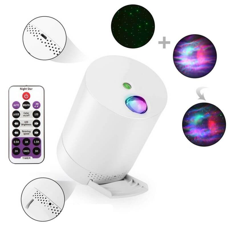 Mit der Sternenhimmel-Lampe verwandeln Sie Ihr Zimmer in ein galaktisches Schauspiel. In Rot, Blau, Grün oder einer faszinierenden Farbkombination projiziert die Lampe einen leuchtenden Kosmos an Ihre Wände oder Decke. Ob auf dem Nachttisch oder Schreibtisch: dieses vielseitige Lichtobjekt passt sich perfekt an Ihre Wohnumgebung an. Nutzen Sie die 7 Farbvariationen und die unterschiedlichen Anzeigemodi, um Ihre persönliche Atmosphäre zu schaffen.